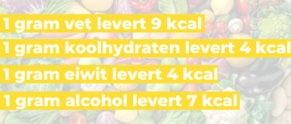 Bij het bereiken van een gezond gewicht, of dit nu afvallen of aankomen betreft, draait alles om de hoeveelheid calorieën die je binnenkrijgt. Een calorie is de maat voor de hoeveelheid energie in eten. Energie die we nodig hebben om te kunnen functioneren; om te kunnen denken en om al onze spieren en organen te laten werken. Ook op de momenten waarop je slaapt. Deze energie wordt uitgedrukt in kilocalorieën (kcal), waarbij een kcal 1000 calorieën bevat. In het dagelijks leven spreken we echter gewoon van calorie en laten het woord kilo weg. Eigenlijk klopt dat niet, maar niemand heeft hier last van.