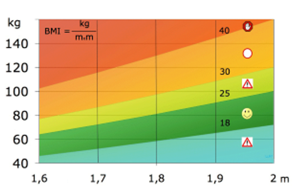 Het vaststellen of je wel of geen gezond gewicht hebt, wordt meestal afgeleid uit je BMI oftewel je Body Mass Index. Hier wordt je lichaamsgewicht afgezet tegen je lichaamslengte. Bij het BMI berekenen wordt geen rekening gehouden met het feit of je misschien behoorlijk wat spiermassa hebt, als je bijvoorbeeld veel sport. Zo kan het dus voorkomen dat je een hoog BMI hebt, terwijl er geen overtollig vet in je lijf zit. Gewicht wordt in BMI-grafieken weergegeven in zones. Een gezonde BMI-zone ligt tussen de 18,5 en 25. Dit betekent dat er qua gezond gewicht best wel marge zit per persoon.