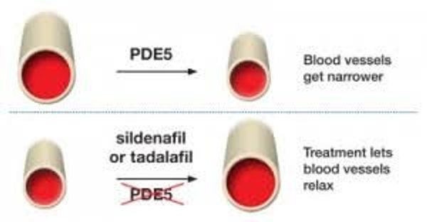 Nadat door onderzoek de oorzaak van de erectiestoornis duidelijk is geworden, is het in een aantal gevallen mogelijk erectiebevorderende medicijnen te gebruiken. Er zijn medicijnen die het enzym fosfodiesterase 5 (PDE-5) remmen. Dit enzym, aanwezig in de holle zwellichamen verzwakt erecties omdat het bloedvaten vernauwt en medicijnen die dit enzym tegenwerken, zorgen voor een langere erectie van een betere kwaliteit. Sildenafil, in de volksmond meestal Viagra of blauw pilletje genoemd, is er een van. Viagra werkt na ongeveer een half uur en de werking houdt zo’n vier tot vijf uur aan. In de meeste gevallen werkt het medicijn goed, behalve bij diabetes en bij beschadigingen aan zenuwen. Het is echter nooit verstandig het zomaar, zonder dat de oorzaak van de erectiestoornis bekend is, te slikken. Koop het dan ook nooit zonder recept via internet, maar laat de huisarts eerst de oorzaak van het erectieprobleem vaststellen, waarna hij of zij een erectiebevorderend medicijn kan voorschrijven.
