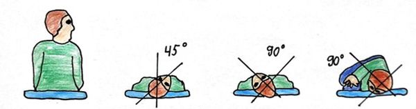 - Drie halfcirkelvormige kanalen die loodrecht op elkaar staan, met daarin een vloeistof – endolymfe – die gaat stromen als het hoofd beweegt (draait), waarna via haartjes de zintuigcellen hier aanwezig de beweging doorgeven aan de hersenen.