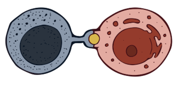 Hodgkinlymfoom is een zeer zeldzame vorm van lymfeklierkanker, die over het algemeen bij wat jongere mensen tussen de 15 en de 30 en bij mannen tussen de 60 en 75 wordt gediagnostiseerd. Dit gebeurt in Nederland zo’n 400 keer per jaar. Bij Hodgkin, waar B-lymfocyten gaan woekeren, treedt er tijdens de celdeling een foutje op waarbij twee stukjes genetisch materiaal per ongeluk van plaats verwisselen. Het gevolg is een nieuwe cel die groter is dan de normale cel en die twee kernen heeft in plaats van één. De cellen heten naar hun ontdekkers: Reed-Sternberg-cellen.