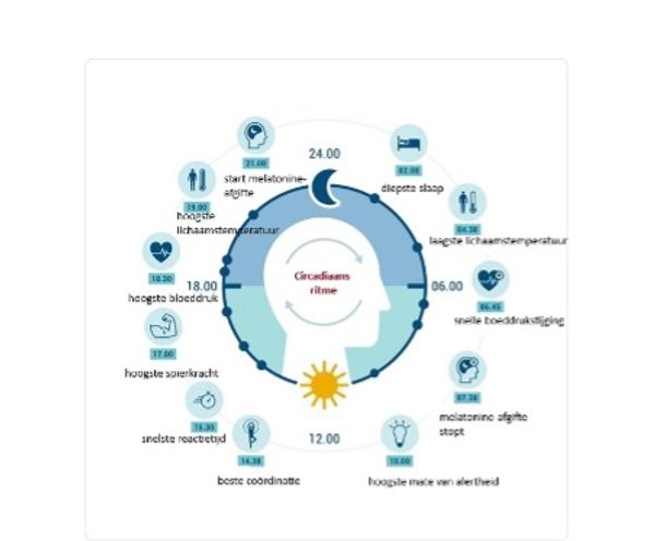 Je lichaam heeft een interne klok die ongeveer 24 uur loopt. Deze klok wordt vooral beïnvloed door licht en donker, maar ook door schermgebruik van je telefoon en/of laptop en door regelmaat in slaaptijden. Het blauwe licht van telefoons en laptops kan de melatonineproductie remmen. Daarom wordt vaak geadviseerd om minstens een uur voor het slapen geen schermen meer te gebruiken.