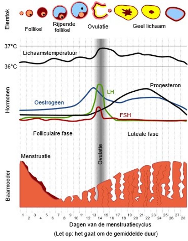Een normale cyclus bestaat gemiddeld uit 28 dagen en begint met de start van het rijpen van een eicel. Dit rijpen gebeurt in een follikel, een soort zakje, dat gestimuleerd wordt om te groeien door het follikel stimulerend hormoon (FSH). Dit FSH, dat aangestuurd wordt door de hypofyse - een klein orgaantje ten grootte van een erwt in het hoofd, vol met hormoonproducerende cellen - zorgt in het follikel weer voor de aanmaak van een ander hormoon; oestrogeen. En oestrogeen zorgt ervoor dat je je als vrouw heel energiek voelt, dat je huid gaat stralen en dat je een sexy uitstraling krijgt. Apart is dat je gezicht in deze periode meer symmetrisch lijkt, iets dat mannen erg aantrekkelijk vinden. Ondertussen gaat in de baarmoeder het slijmvlies groeien, zodat een eventueel bevruchte eicel goed ontvangen kan worden en zich kan nestelen.