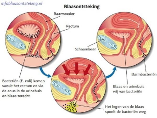 Leestijd: 4 minutenEen aandoening die veel voorkomt bij vrouwen, maar soms ook bij mannen, is een blaasontsteking; een door bacteriën veroorzaakte ontsteking van het slijmvlies van de blaas. Vaak zijn dit bacteriën die thuishoren in de darmen en die via de plasbuis in de blaas terecht zijn gekomen, waar ze gaan ontsteken. In de meeste gevallen is de E. coli bacterie de boosdoener. Klachten van een blaasontsteking zijn meestal het vaker aandrang hebben om te plassen, een branderig gevoel tijdens het plassen en soms een troebele, ruikende urine.