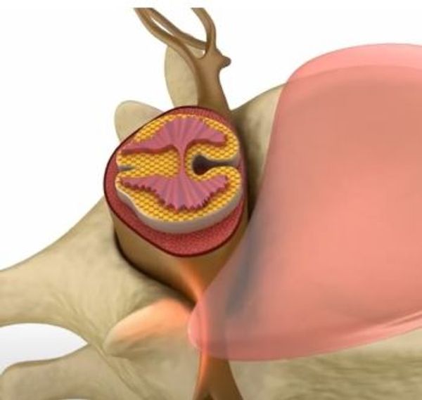 Een tussenwervelschijf bestaat uit een omhulsel van kraakbeen en een middengedeelte van een soort gelei dat nucleus pulposis wordt genoemd. Alle wervels vormen samen gestapeld een buis (kanaal), waardoorheen het ruggenmerg loopt. In dit ruggenmerg bevinden zich onder meer 31 ruggenmergzenuwen en het hersenruggenmergvloeistof. Als er een te grote belasting op de tussenwervelschijf komt te staan, kan deze scheuren en kan de geleiachtige substantie naar buiten stulpen. Die uitpuilende kern kan vervolgens op een zenuw drukken die tussen de wervels door uit het wervelkanaal komt.