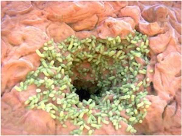 Afbeelding 1: Apocriene zweetklier met bacteriën