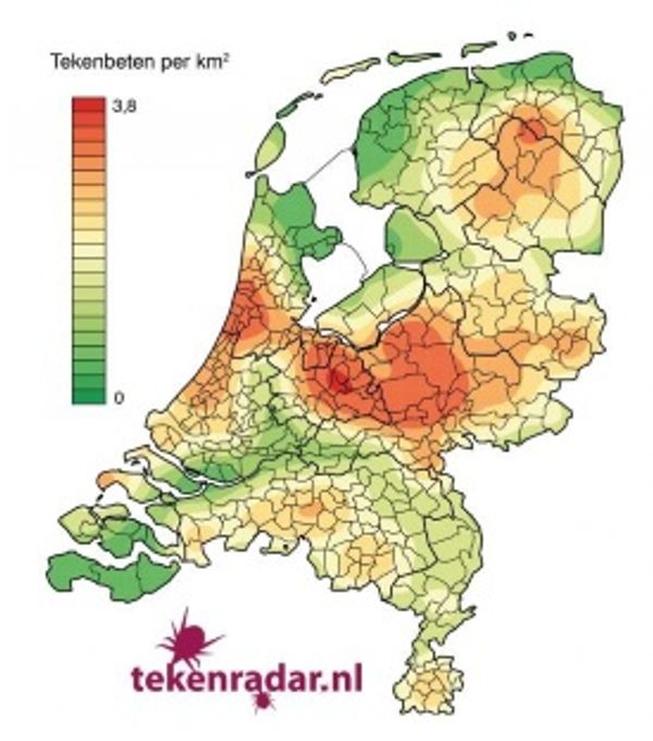 Wist je bijvoorbeeld dat er in onze omgeving alleen al meer dan 1,3 miljoen tekenbeten per jaar worden geregistreerd? Vooral in de maanden juni en juli is er een tekenbetenpiek, waarschijnlijk omdat dan veel mensen buiten zijn, maar eigenlijk zijn er altijd wel teken actief als het niet vriest. Teken doen het bij ons goed in gemend loofbos met veel varens op de bodem en in dennenbossen met lange grassen. En anders dan dat je misschien zou verwachten, zitten ze niet in bomen en laten ze zich niet vallen, maar bevinden ze zich in bodembedekkers en dat met reden. Teken, en we praten hier over een specifieke teek, namelijk de schapenteek, een klein spinachtig insectje met acht zwartgekleurde pootjes, voedt zich normaal met het bloed van kleine (knaag)dieren en vogels en die zijn hier meer dan volop. Loop jij nu als mens door deze omgeving kan het zomaar zijn dat de teek je geur oppikt en je gewoon aanziet voor een lekker dier en zich vastbijt in je huid.